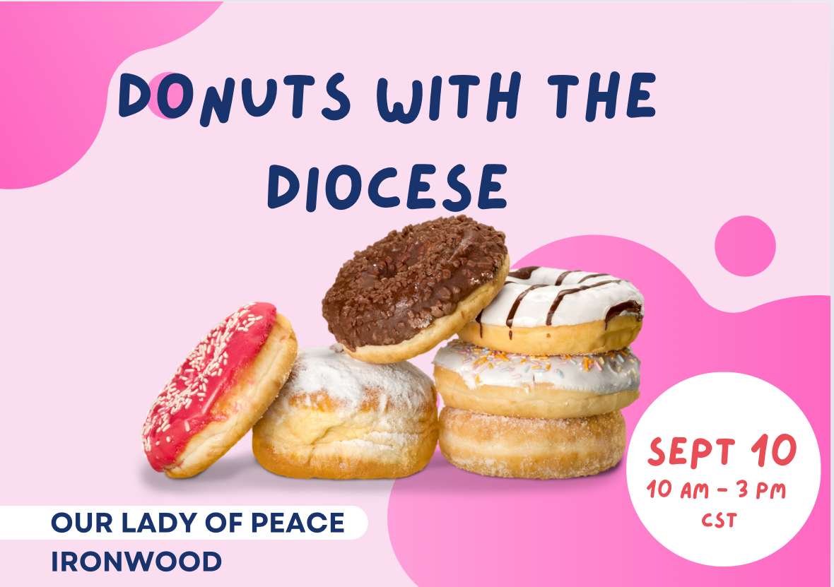 The next Donuts with the Diocese event will take place at Our Lady of Peace, Ironwood, on September 10, 2024, from 10:00 a.m. to 3:00 p.m.