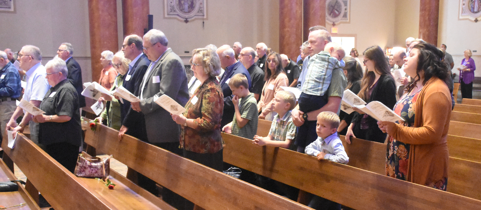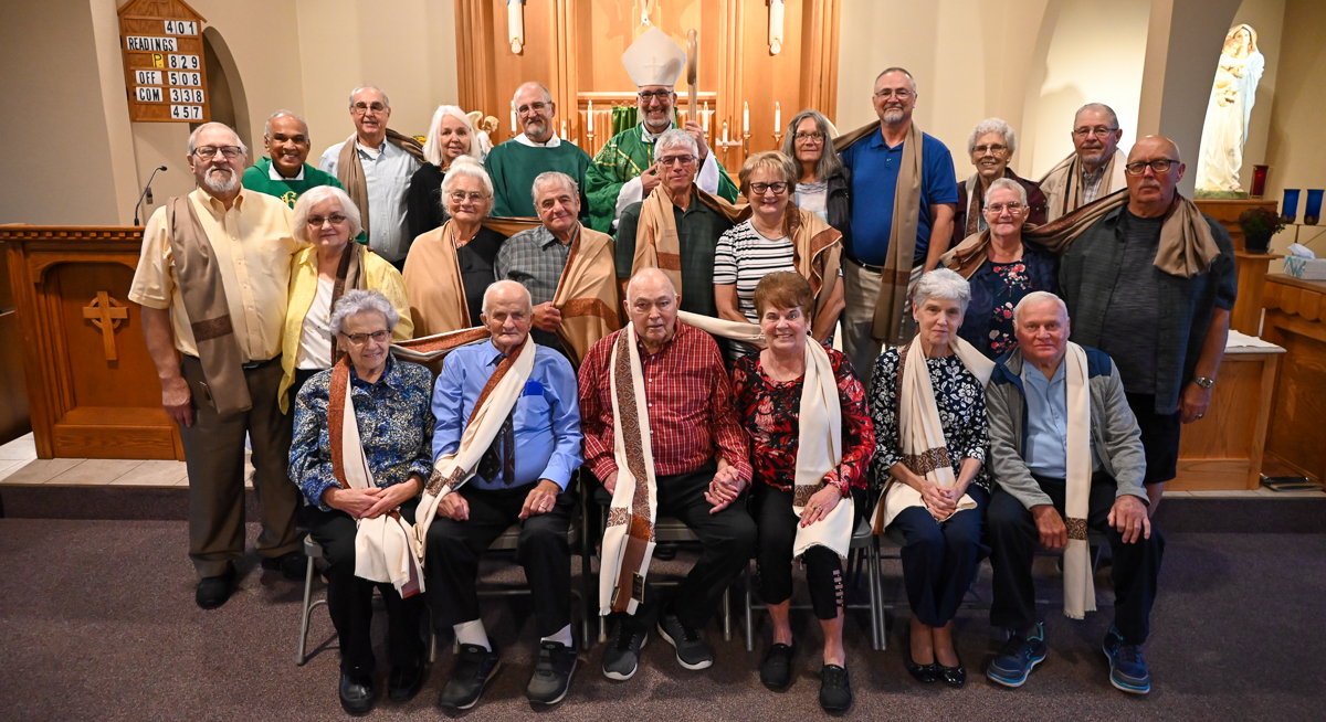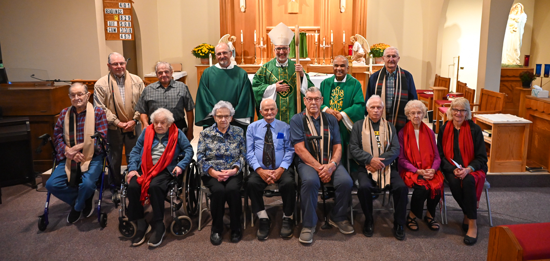 Bishop John Doerfler celebrated the Milestone Wedding Anniversary Mass at St. Peter Cathedral on Sept. 8, 2024. Concelebrating were Bishop Emeritus James Garland and Fr. Brandon Oman, cathedral pastor, assisted by Dcn. Gregg St. John. Dcn. Paul Lochner was emcee. Recognized anniversary milestones were 25th, 30th, 35th, 40th, 45th, 50th or 51st and above. Couples present enjoyed a reception and socializing after the Mass.