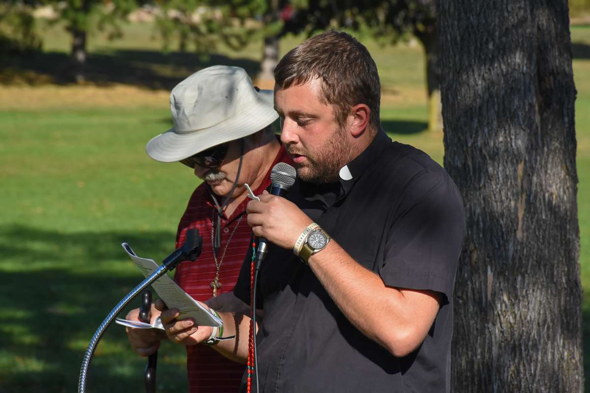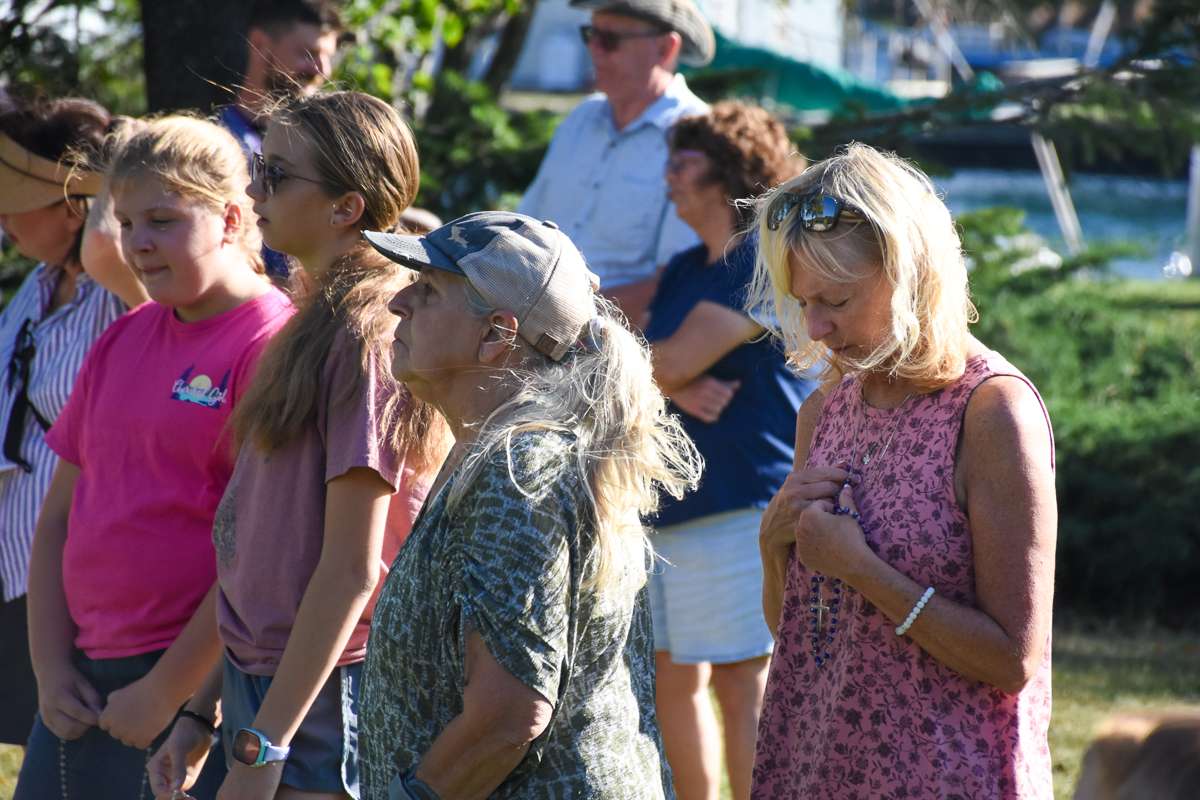 On Oct. 5, the Coast to Coast Rosary was prayed by Catholics all across the United States at the same time for peace in the country and for the sanctity of human life. In Marquette, parishioners gathered at the Ellwood Mattson Lower Harbor Park for the Rosary. Fr. Tom Merkel, pastor of St. Louis the King in Harvey, and Dcn. Don Thoren, from St. Peter Cathedral, led the Patriotic Rosary in prayer and song. Fourth Degree Knight of Columbus Mario Scibelli turned on a light as each Hail Mary was dedicated to each one of the fifty states in the U.S. The event was planned by Sarah and Tom Seeke, Cindy Fleming and other parishioners representing area churches and organizations.